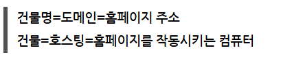 도메인을 구매하면 자연스럽게 호스팅이 따라옵니다. 앞서 도메인은 건물명이라고 말씀을 드렸습니다. 호스팅은 건물 그 자체입니다.