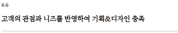 완성도 높은 콘텐츠를 만들고, 퀄리티 있는 이미지와 사진, 영상을 구성하여 홈페이지를 단지 보는 것을 넘어 문의까지 이어지도록