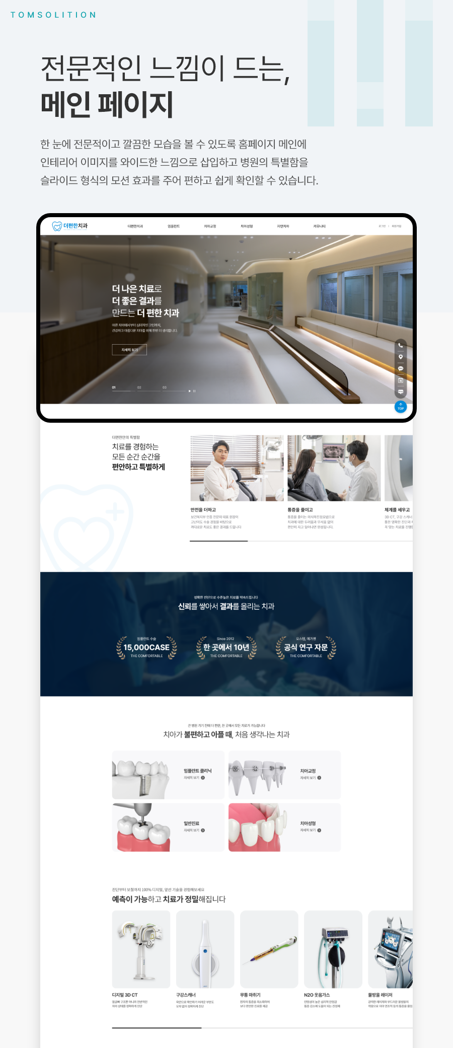 저희 탐솔루션은 14년 이상의 홈페이지 제작 노하우를 바탕으로 병원의 현재 상황, 주변 여건, 전략과 방향에 맞추어 맞춤