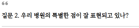 병원의 가치가 잘 드러나도록 해야 합니다.