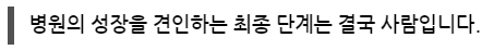 병원의 본질인 치료를 잘하는 것이고, 본질을 강화하는 것이 먼저입니다.