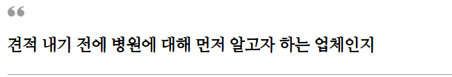 치료 철학, 가치관, 병원의 강점, 주요 치료의 특징, 경쟁 병원의 상황을 다각도로 분석해야 합니다. 다른 병원, 똑같은 견적? 이는