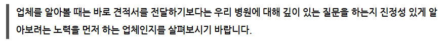 있습니다. 그러나 원장님과 병원에 대해 자세한 정보나 소통 없이 나오는 견적은 '공장식 견적'이라고 봐야 합니다.