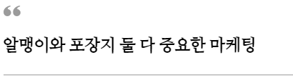 마케팅을 흔히 포장지에 비유합니다. 포장지는 화려하지만 알맹이가 별로라면 신뢰와 기대를 떨어트리겠죠. 알맹이는 좋은데
