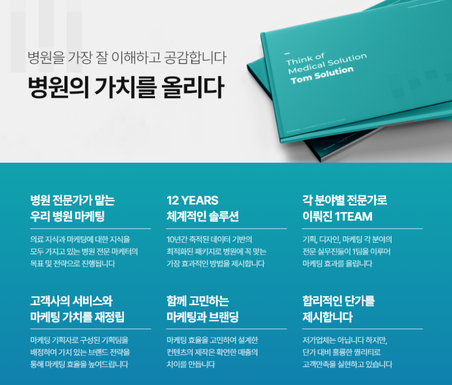 저희 탐솔루션은 올해로 벌써 14년 차 병원을 전문으로 마케팅을 진행해 오고 있습니다. 그간 수많은 병원들의 성공을 만들어
