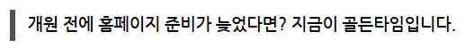 요즘 사용자들은 홈페이지에 들어온 후 10초 이내에 핵심 정보를 훑고 판단합니다. 따라서 많은 텍스트보다도 간결한 구성,