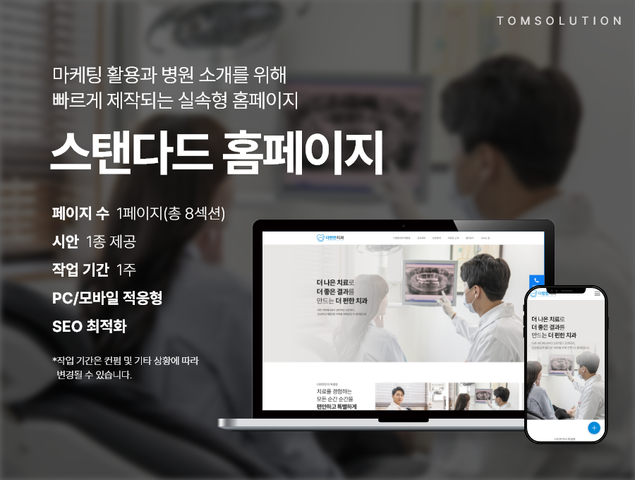개원을 앞두고 '사람이 없어서, 시간이 없어서' 홈페이지 준비가 부담스럽다면 탐솔루션의 여수병원홈페이지 스탠다드 홈페이지가