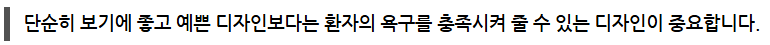 디자인은 가독성, 직관성, 전문성이 중요합니다. 환자는 홈페이지를 ‘읽기’보다는 ‘스캔’합니다. 그래서 처음 방문했을 때 환자들에게