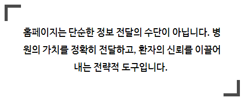 접점입니다. 이렇듯 홈페이지가 병원의 신뢰도와 전문성을 결정짓는다는 사실, 알고 계셨나요?