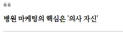 병원의 마케팅은 결국 ‘의사’라는 사람에 의해 좌우됩니다. 의료는 전문가 비즈니스이기 때문에, 소비자인 환자들은 병원의 설비나