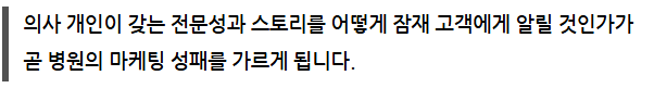 환자들에게 ‘이 의사에게 치료받고 싶다’는 감정적 동기를 유도하는 중요한 포인트가 됩니다.