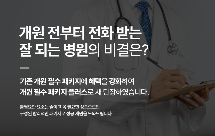 준비하시는 원장님들에게 꼭 필요한 상품 '개원 필수 패키지 플러스'를 제안해 드리고 있습니다.