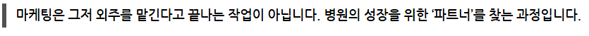 어떤 병원마케팅대행사 업체들은 처음부터 “이 키워드만 하시면 됩니다”, “영상 먼저 찍으시요 원장님” 과 같은 제안을 하기도