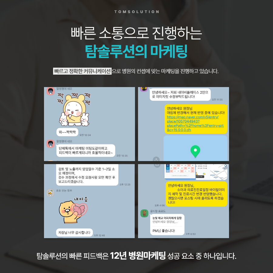 그 파트너가 병원의 맥락을 이해하고, 장기적인 전략을 함께 고민할 수 있어야 성과로 이어질 수 있습니다. 탐솔루션은 병원 마케팅의