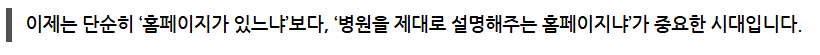 SNS와 광고의 시대에도, 환자들은 병원 홈페이지를 찾아보고, 의료진의 사진과 이력을 보고, 병원의 분위기를 사진으로 느끼며