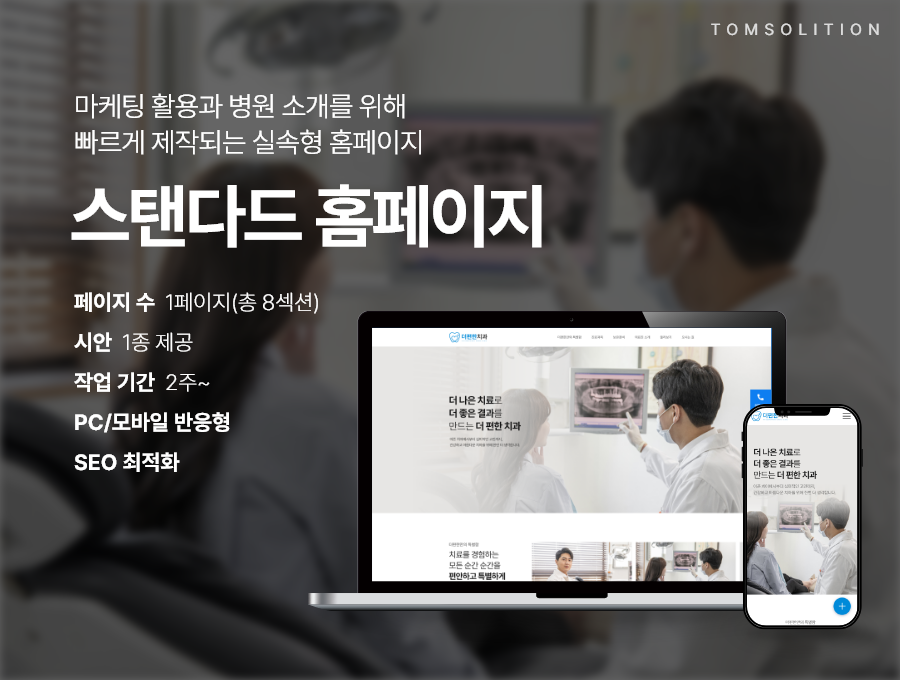 방문을 결정합니다. 스탠다드 홈페이지는 짧은 제작 기간 안에 퀄리티 높은 결과물을 만들어 낼 수 있는 탐솔루션의 베스트셀러