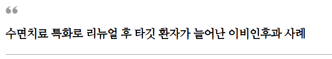“요즘은 그냥 이비인후과 진료만으로는 경쟁력이 없더라고요. 수면 클리닉을 본격적으로 해보려고 하는데, 지금 홈페이지로는
