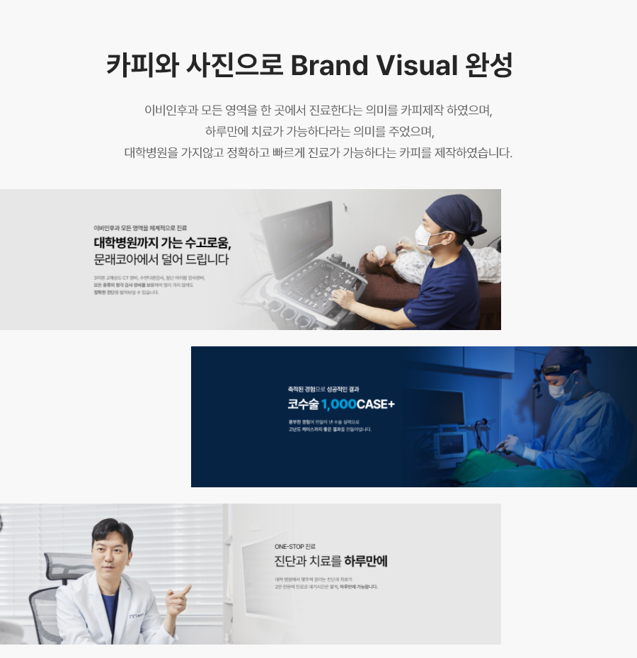 수 있고 가벼운 치료를 받고자 하는 고객입니다. 이럴 때는 홈페이지를 읽기 보다는 훑기 때문에 디자인 퀄리티가 더욱