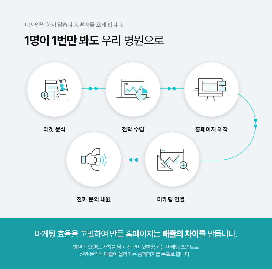 ‘있기 위해’ 만드는 것이 아니라, 병원이 온라인에서 어떻게 보일지, 환자의 첫 인상과 신뢰를 책임지는 얼굴입니다.