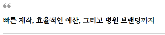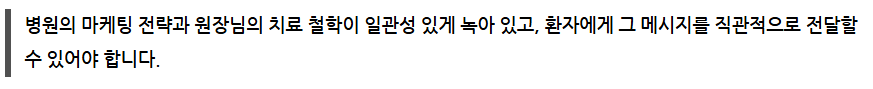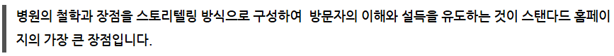 단, 중요한 것은 ‘무엇을 얼마나 많이 담는가’가 아니라 ‘어떻게 담느냐’입니다. 페이지 수가 많고 복잡한 구성보다는, 병원의 가치와