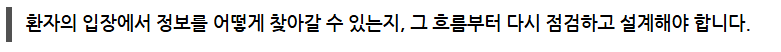 많은 홈페이지들이 병원의 정보를 '전달'하려는 데 집중한 나머지, 환자의 관점에서 '어떻게 보이는지'는 고려하지 않는 경우가