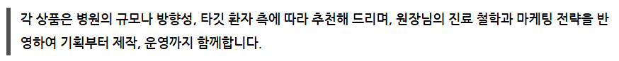 덜어드리기 위해 병원의 니즈와 상황, 전략에 따라 스탠다드, 디럭스, 프리미엄 3가지 상품군을 운영하고 있습니다.