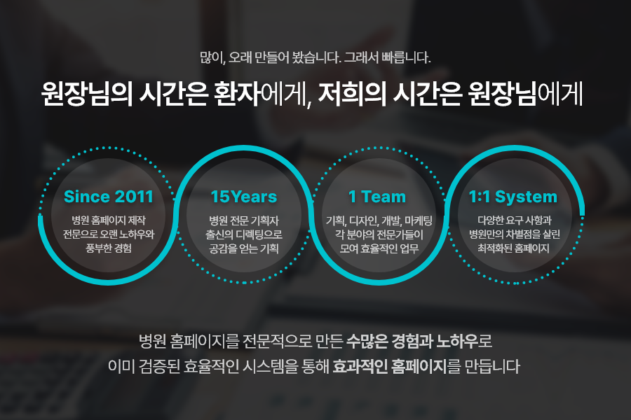 진료하시느라 바쁜 원장님을 대신해 온라인에서도 병원이 신뢰를 얻고, 환자 유입이 자연스럽게 이루어질 수 있도록 돕겠습니다.