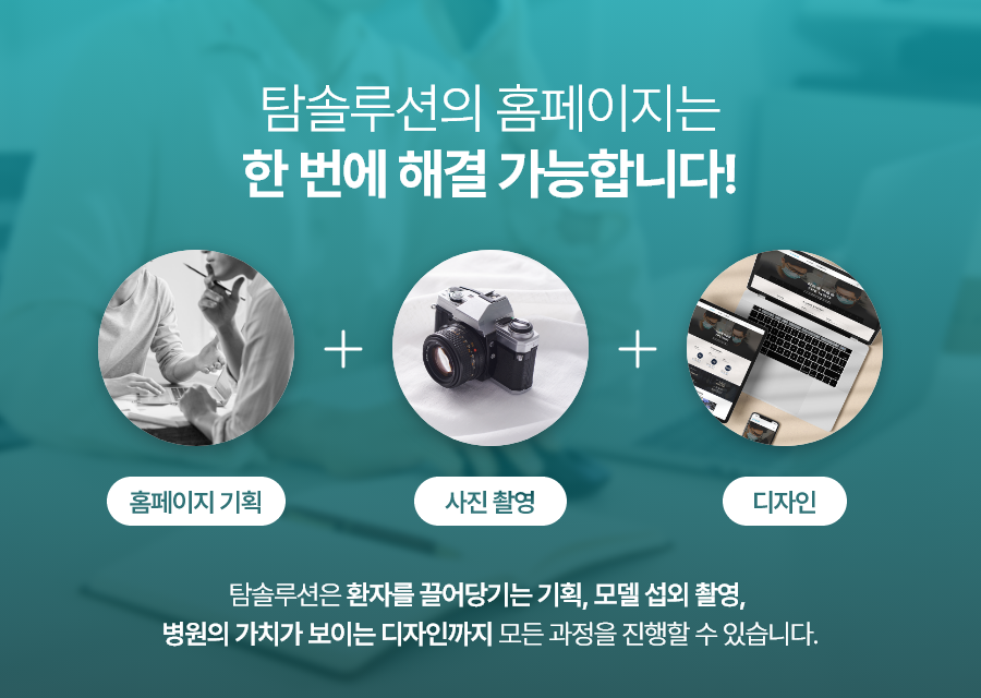 진료에 집중하실 수 있도록, 저희 여수치과홈페이지제작 업체 탐솔루션이 홈페이지의 모든 부분을 함께 고민하고 만들어