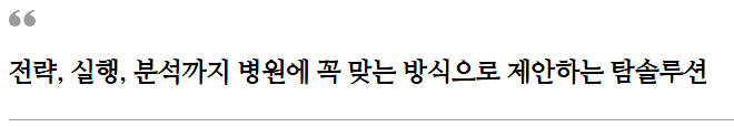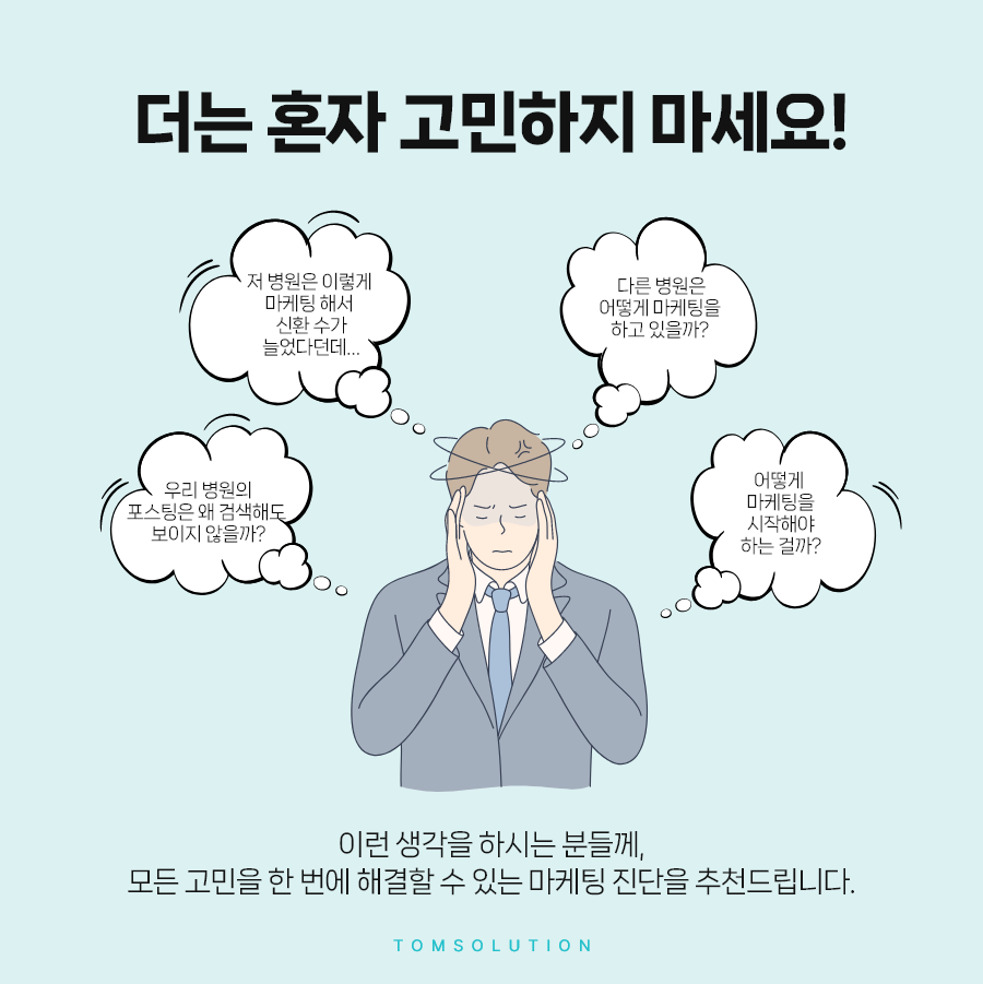 탐솔루션은 원장님의 고민과 병원의 현 위치를 기준으로 가장 현실적인 전략을 제안드립니다. 마케팅의 중심을 함께 잡아가는 파트너,