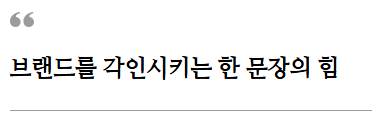 활용되어 브랜드를 각인시키는 역할을 합니다. 브랜드는 결국 한 문장의 철학에서 시작됩니다.