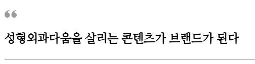 이 문장은 성형외과홈페이지 첫 화면 배너, 프로필 페이지, 스마트 플레이스 대표 이미지, SNS 소개 글 등 다양한 곳에 반복적으로