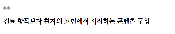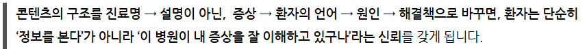 없는지’ 등 환자가 병원에 가지 않아도 예측할 수 있게 하는 정보 구성이 전환율을 높입니다.
