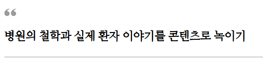 이들에게 우리 병원만의 관점, 진료 철학, 스토리가 드러나야 “이 병원은 좀 다르다”는 인식을 줄 수 있습니다. 결국 환자의 선택을