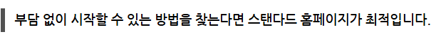 시간을 더 많이 확보하고 싶다면, 예산과 기간의 부담 없이 스탠다드 홈페이지로 빠르게 시작하시길 추천드립니다. 감사합니다.