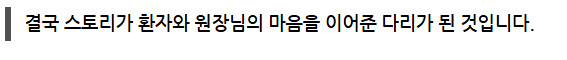 이런 진정성 있는 스토리를 본 환자들은 무릎이 아파서 병원을 검색하던 중, 단순히 '수술 잘하는 병원'보다는 ‘나를 이해해 줄 의사’를