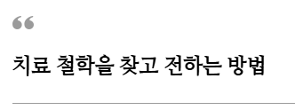 치료 철학을 자연스럽게 스며들게 하는 그릇이 되어야 합니다.