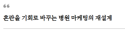이 시점에서 병원의 마케팅은 방향보다는 전략이, 실행보다는 기획이 중요한 시기입니다.