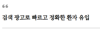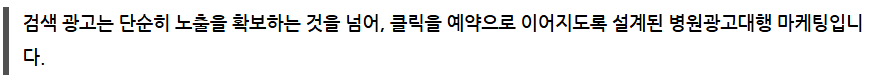 바로 검색 광고입니다. 병원의 위치, 진료과목, 경쟁 병원 분석을 통해 전환율이 높은 키워드를 선정하여 광고를 운영하는 것이
