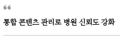 형식의 언론 기사를 통해 병원의 진료 철학이나 주요 시술을 공식적인 매체에 노출하여 병원의 전문성을 알리며, 환자들에게