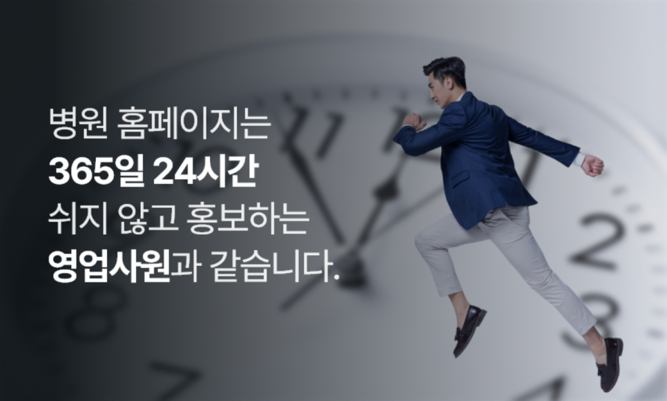 홈페이지는 단지 보기 좋고 예뻐서는 안 됩니다. 병원의 마케팅 전략에 부합되는 콘텐츠, 기능, 구성이 반영되어 있어야 합니다. 그래서