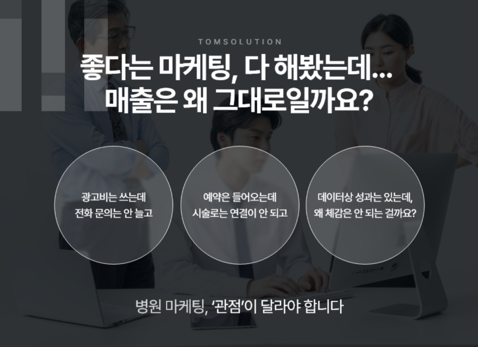 발휘합니다. 탐솔루션은 병원 한 곳 한 곳의 상황을 다각도로 분석하여 맞춤 전략을 수립하고, 실제 실행까지 책임지는