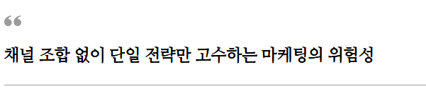 마케팅을 하나의 채널에만 의존하는 것은 너무나도 위험한 선택입니다.
