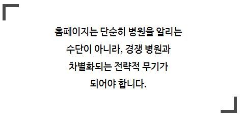 홈페이지가 단순히 병원을 소개하는 공간이라고 생각하면 단순한 접근입니다. 환자들이 병원 홈페이지를 찾아오는 이유는 간단합니다.