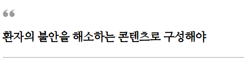 심리적 장벽을 낮춰 줍니다. 무엇보다 이 모든 콘텐츠는 ‘우리 병원에서는 어떻게 다르게 접근하는가’를 보여주는 방향으로