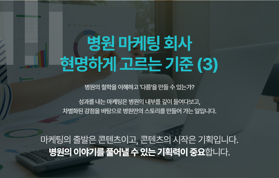 가장 빠른 길입니다. 잘못된 업체는 눈에 보이는 수치만 강조하거나, 병원의 정체성과 무관한 과장된 콘텐츠로 단기적 유입만을