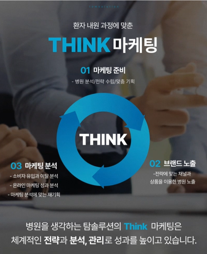 무엇보다 탐솔루션은 병원이 마케팅을 통해 어떤 변화를 이루고 싶은지를 함께 고민하고, 그 목표에 다가가기 위한 방법을