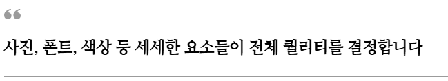 반대로 이미지가 부족하거나 기존에 찍은 사진의 퀄리티가 낮으면 아무리 디자인을 잘 구성해도 효과가 반감됩니다. 또한 폰트의