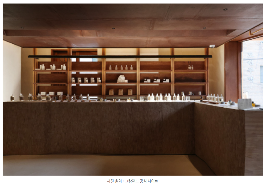 같아서 주제를 가지고 왔습니다. '그랑핸드'는 '향의 일상화' 라는 가치를 추구하며 그랑핸드의 향과 고객의 일상 간의 거리를