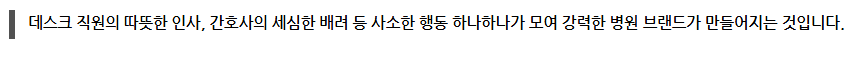 얻는 데 훨씬 효과적입니다. 이러한 진솔한 스토리는 환자들이 우리 병원을 '믿음이 가는 곳', '친절한 곳'으로 기억하게 하는
