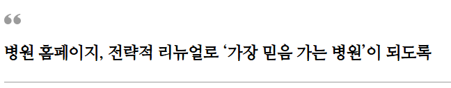 홈페이지에서 환자들이 병원에 대한 신뢰를 느껴야 하는데 의외로 형식적으로 만드는 병원을 자주 봅니다.